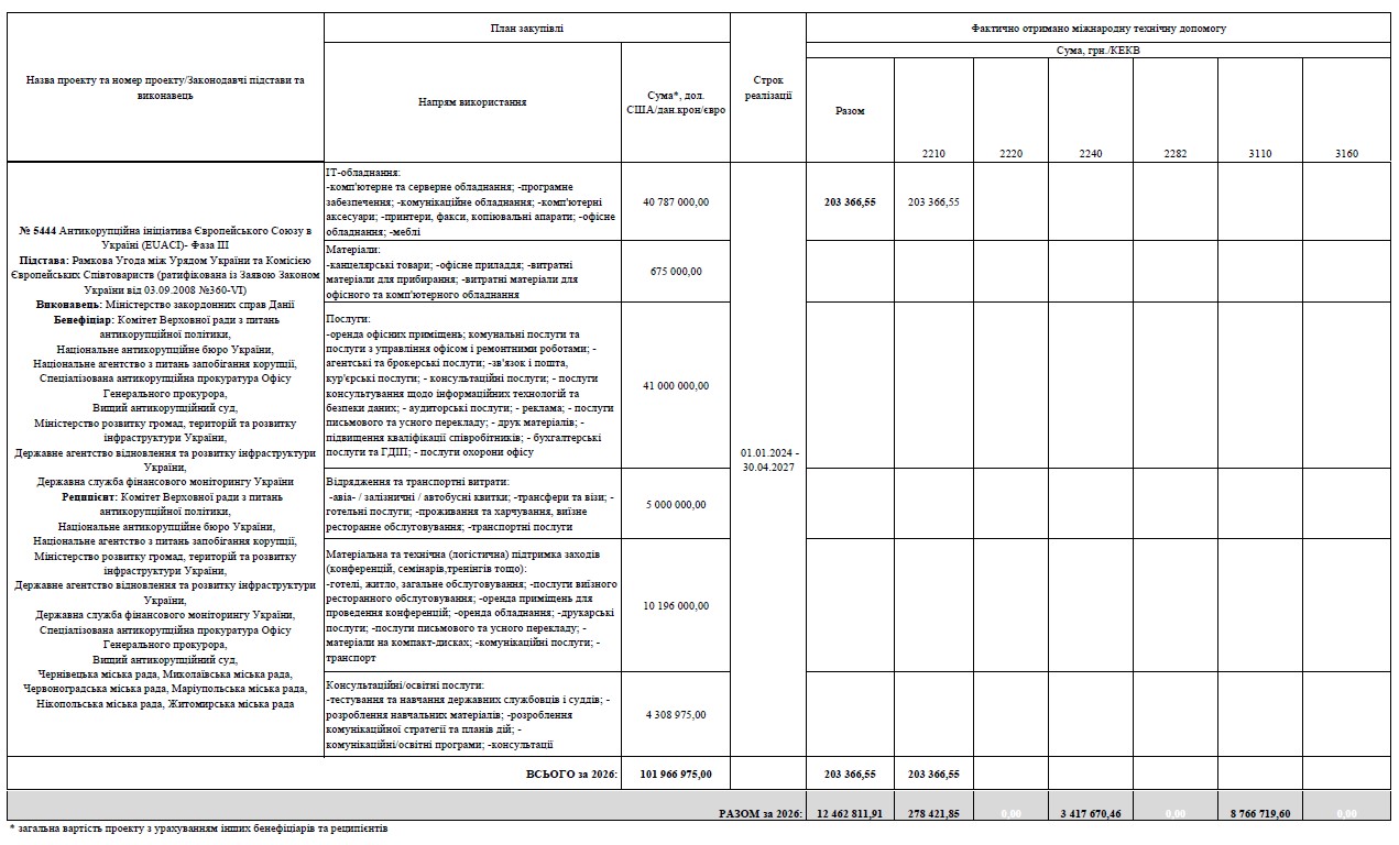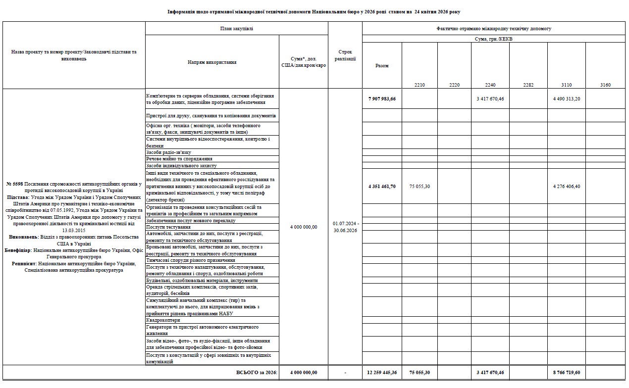 Інформація щодо отриманої міжнародної технічної допомоги Національним бюро у 2026 році станом на 24 квітня 2026 року