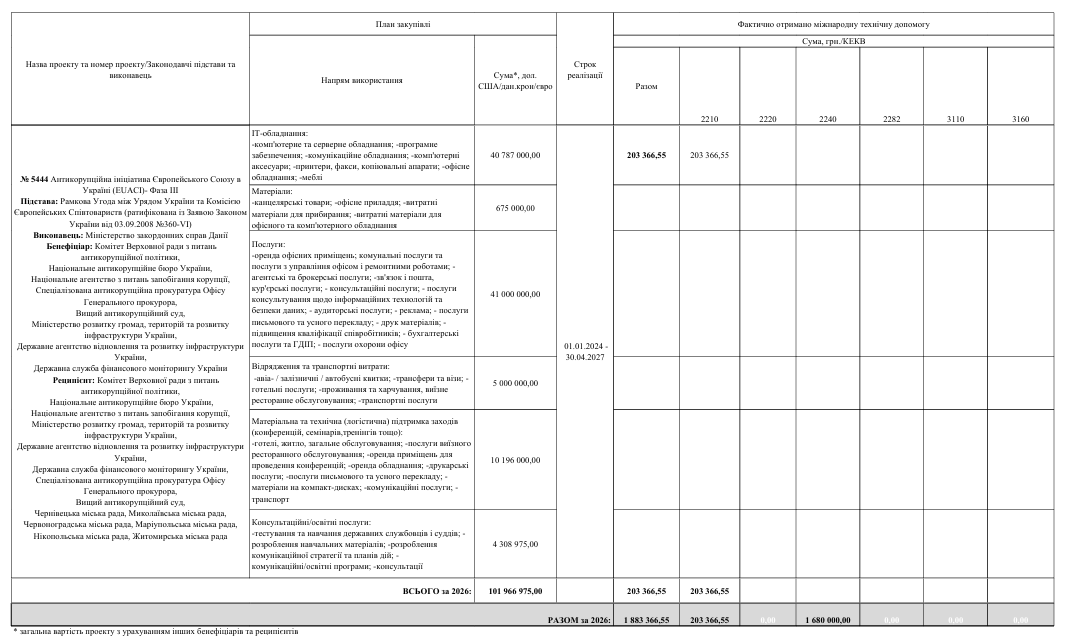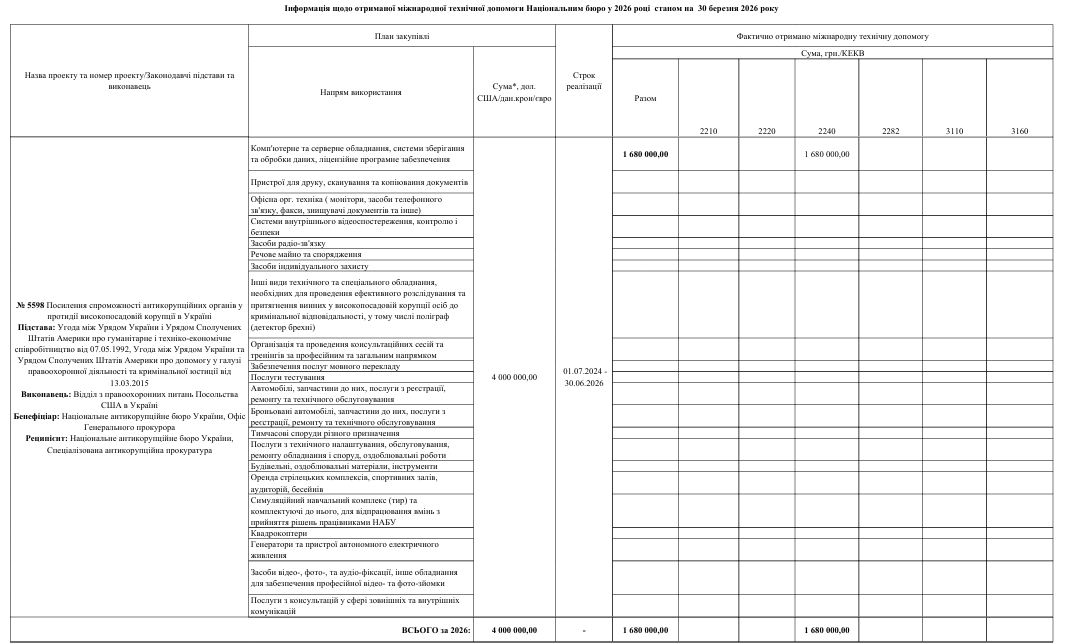 Інформація щодо отриманої міжнародної технічної допомоги Національним бюро у 2026 році станом на 30 березня 2026 року