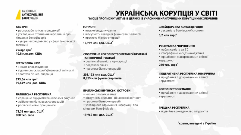 "Місце прописки" активів деяких із учасників найгучніших корупційних злочинів