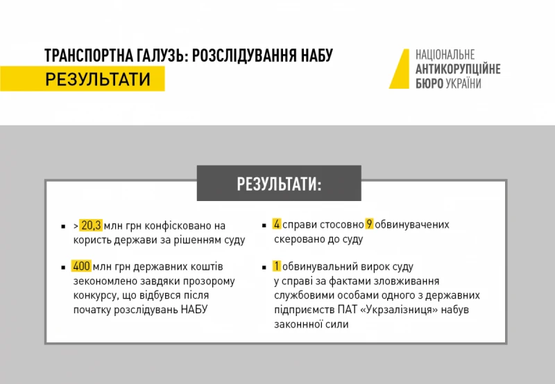 Розслідування НАБУ в сфері транспорту: 20 млн грн конфісковано на користь держави