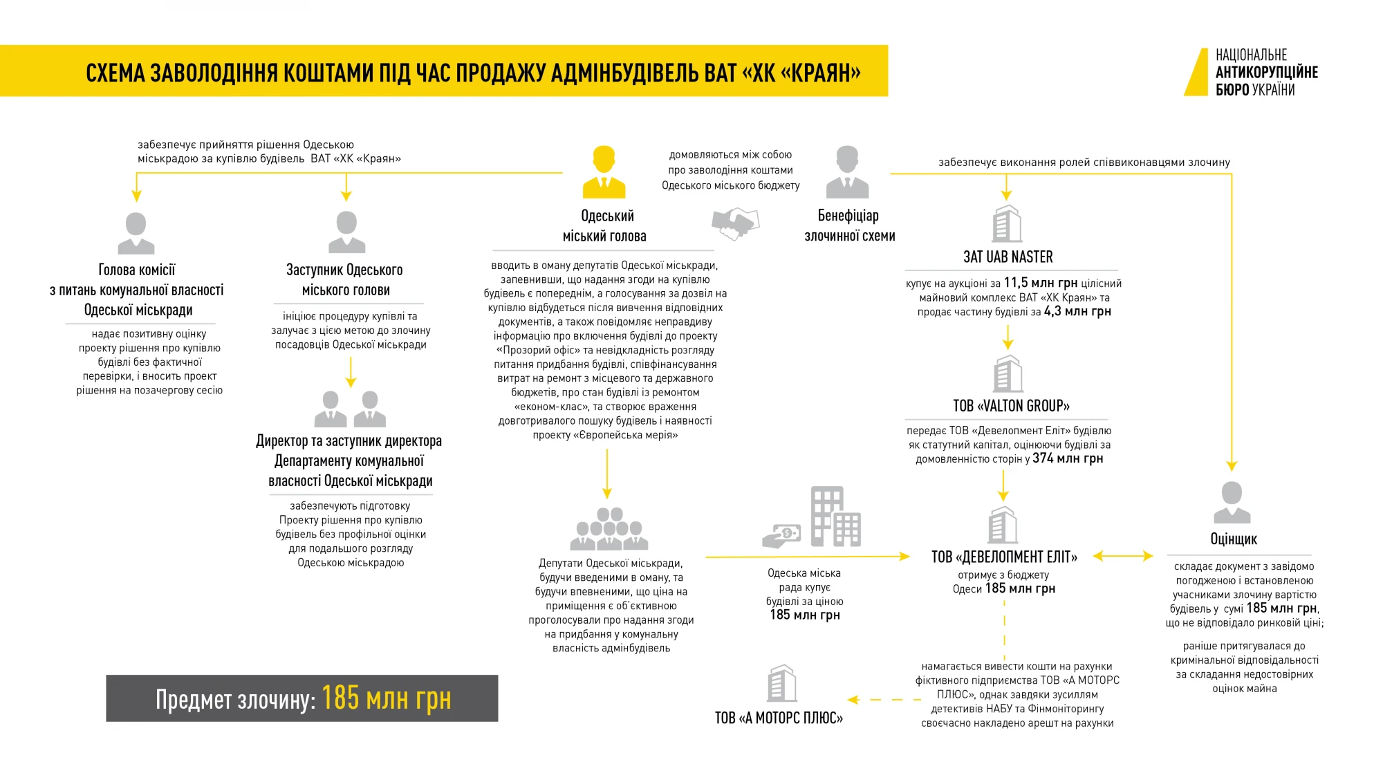 З огляду на значний суспільний резонанс та з метою зняття численних спекуляцій, НАБУ і САП публікують детальну схему заволодіння коштами Одеського міського бюджету під час продажу будівель ВАТ «ХК «Краян».
