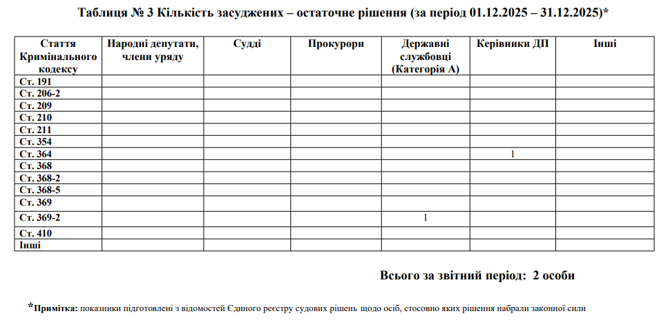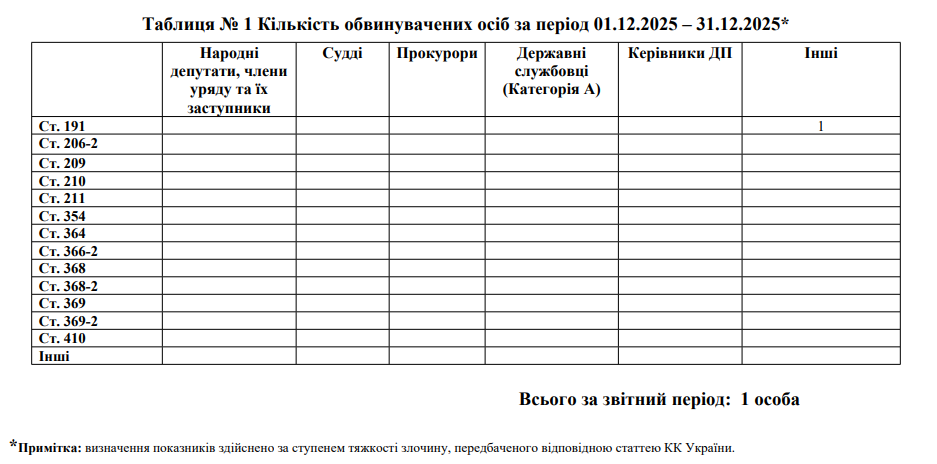 Інформація про результати розслідувань НАБУ (грудень 2025 року)