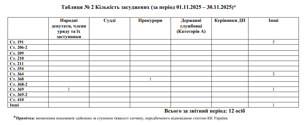 Інформація про результати розслідувань НАБУ (листопад 2025 року)