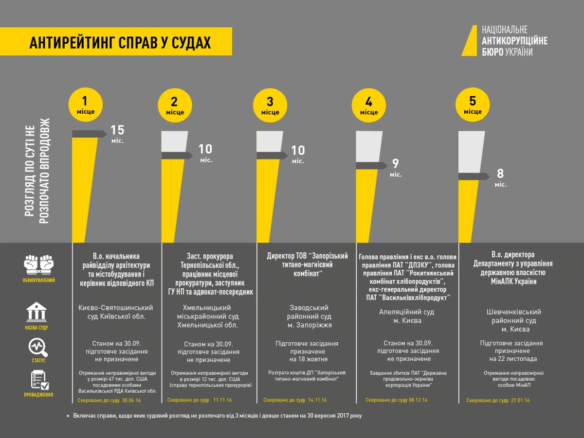 Також пропонуємо вашій увазі актуальний «Антирейтинг» справ НАБУ у судах.