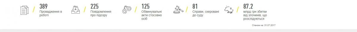 Станом на кінець липня 2017 року детективи НАБУ розслідують 389 проваджень