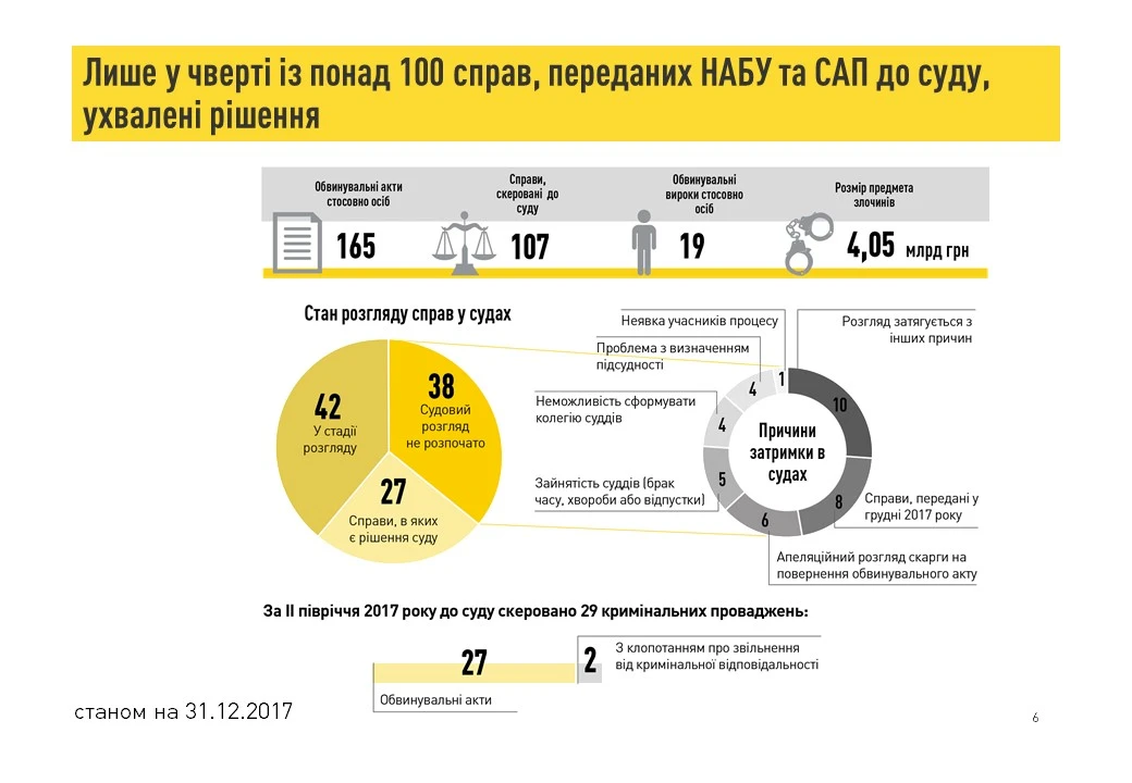 Детальний звіт про діяльність Національного антикорупційного бюро України за ІІ півріччя 2017 року — за посиланням: https://nabu.gov.ua/report/zvit-druge-pivrichchya-2017-roku