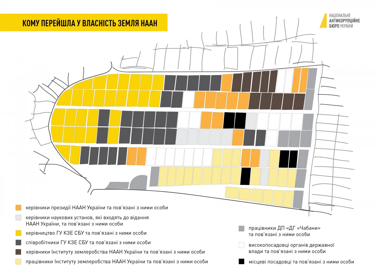 Роль п’яти осіб, яким повідомлено про підозру, у корупційній схемі полягала у тому, що вони як члени президії НААН проголосували за виділення земельних ділянок з числа особливо цінних земель, а згодом оформили окремі ділянки на себе, близьких родичів та пов’язаних осіб. Зазначені факти є одним із епізодів кримінального провадження щодо розкрадання земель НААН.