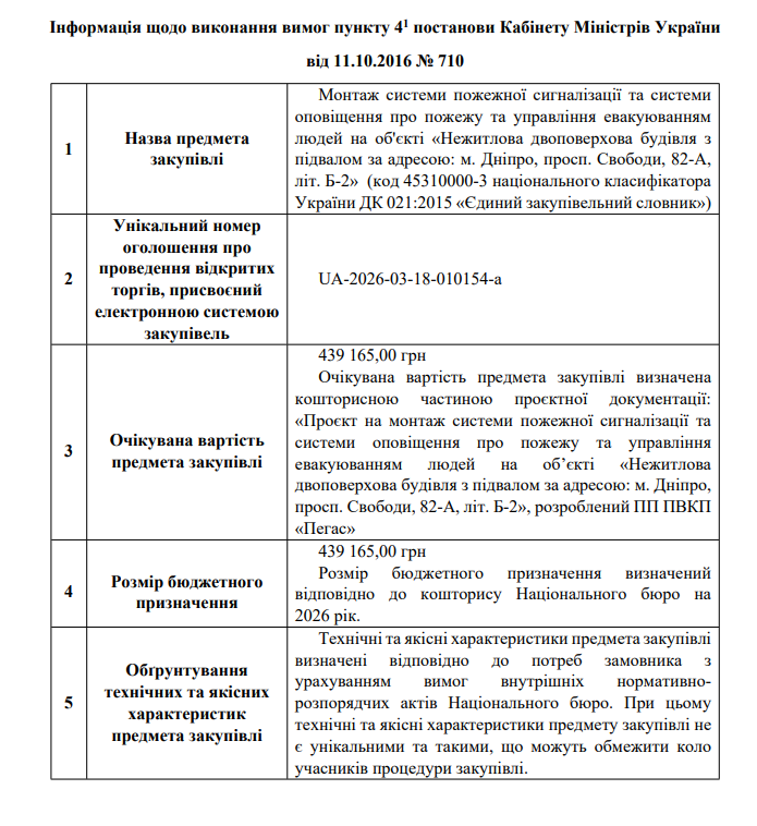 Інформація щодо виконання вимог пункту 4-1 постанови Кабінету Міністрів України від 11.10.2016 N 710, закупівля UA-2026-03-18-010154-a