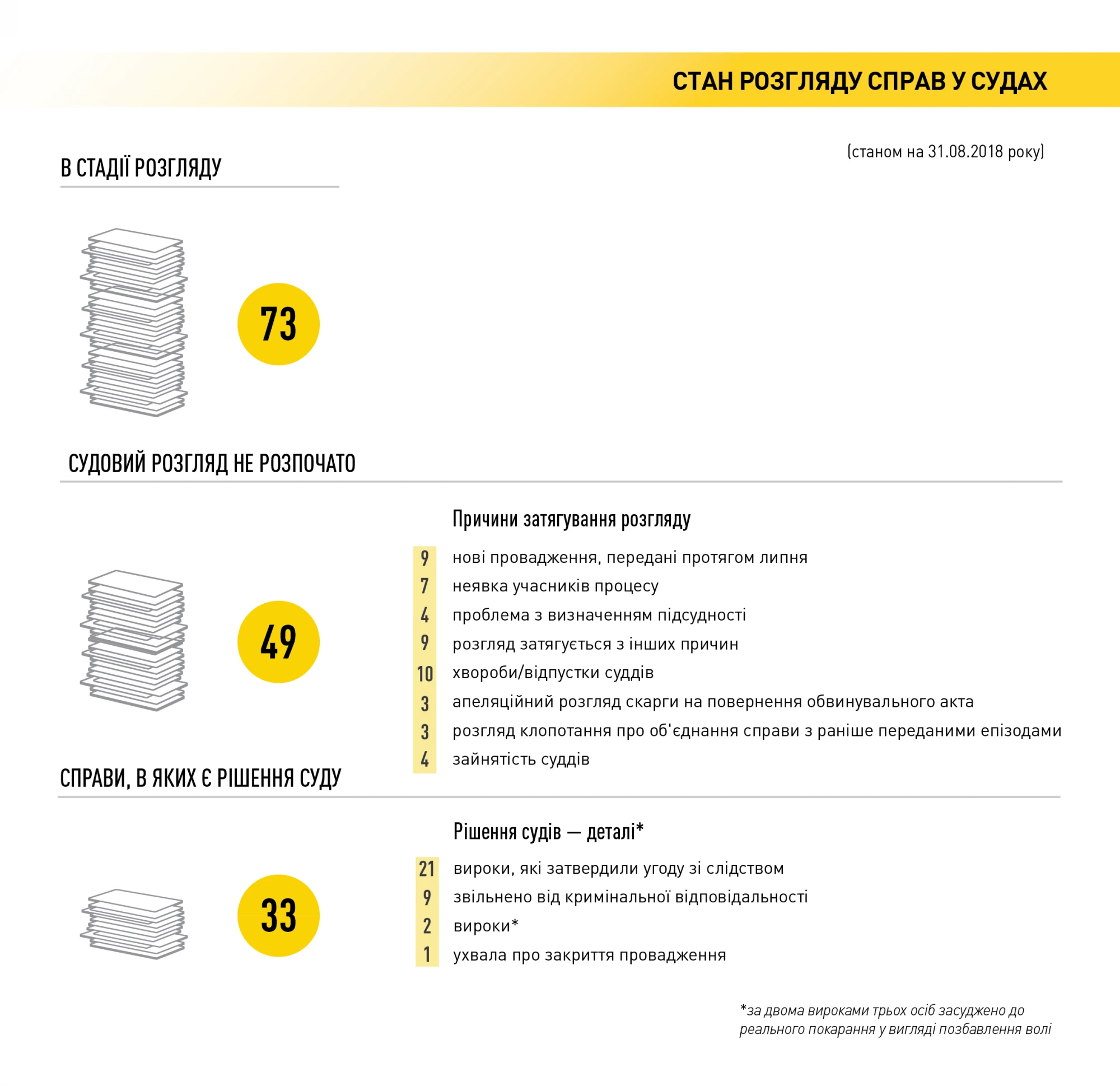 Більш детальна інформація про провадження, розслідувані детективами НАБУ й передані до суду, доступна в розділі сайту Національного бюро «Справи у суді» та в інфографіці.