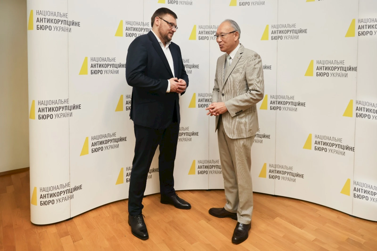 Продовження підтримки антикорупційних ініціатив та розбудова потенціалу Бюро — про це йшлося під час зустрічі керівництва НАБУ з Надзвичайним і Повноважним Послом Японії в Україні Мацуди Кунінорі та Генеральним директором Департаменту з питань урядування та розбудови миру Японського агентства міжнародного співробітництва (JICA) Масуда Джунко.