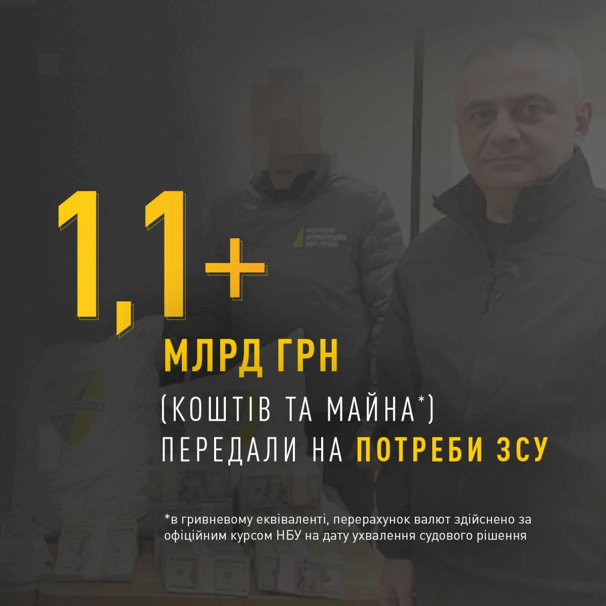 Понад 1,1 млрд грн застав та арештованих активів у справах НАБУ і САП спрямовано на потреби ЗСУ.