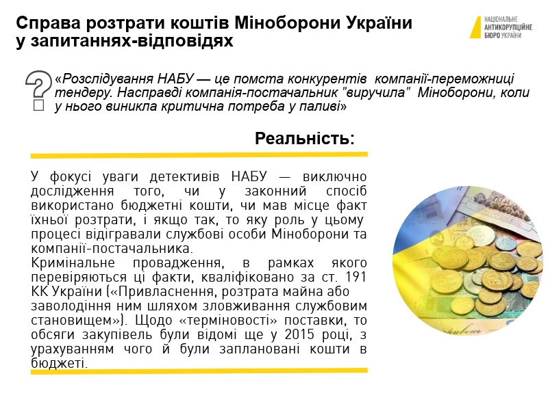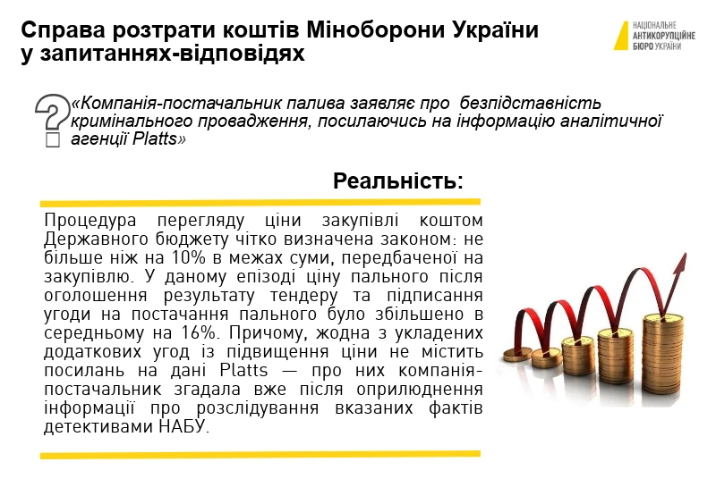 Роз’яснення у справі про розтрату державних коштів під час закупівель палива для Міноборони