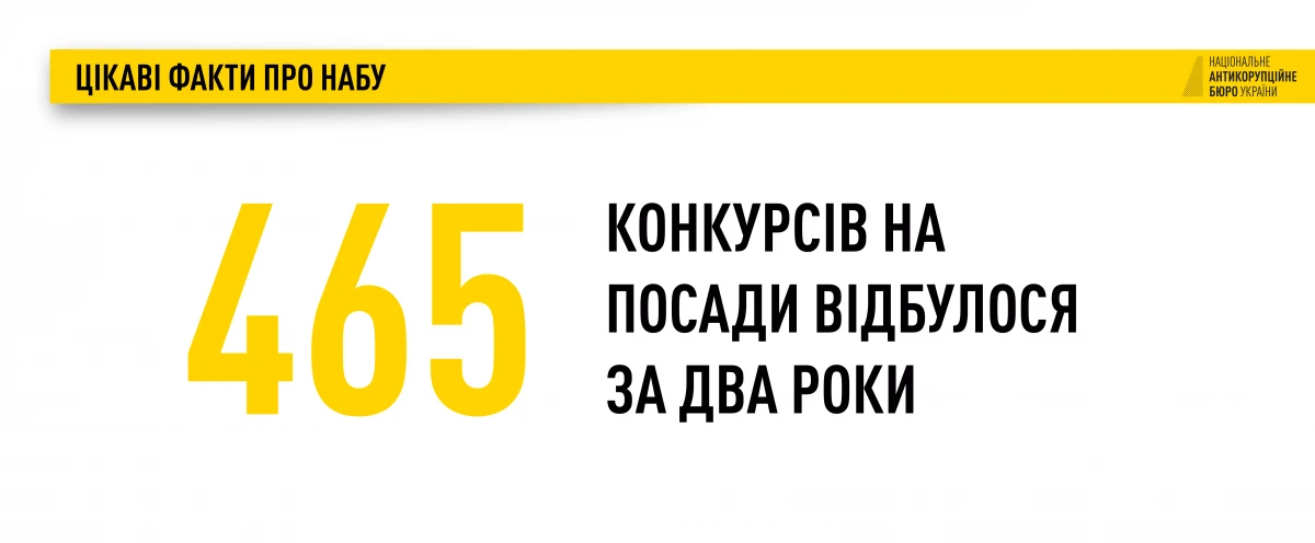 Усі призначення на посади в НАБУ, крім заступників Директора, відбуваються на конкурсній основі. Упродовж двох років відбулося 465 конкурсних відборів, участь у яких взяли понад 20,5 тис. претендентів.