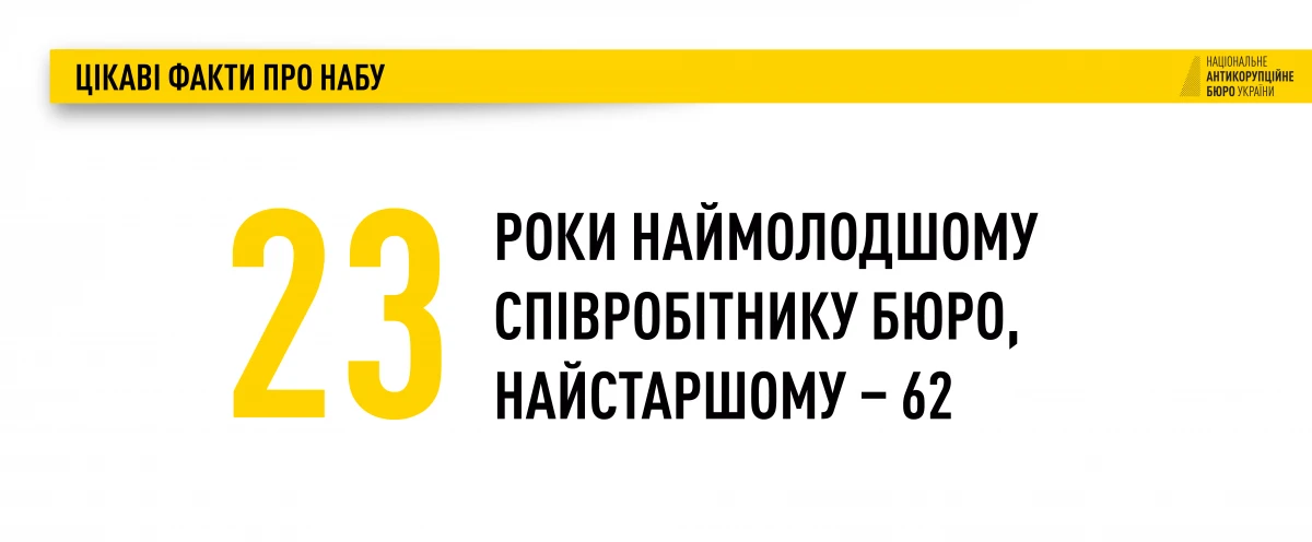 За результатами конкурсів співробітниками НАБУ стали 560 осіб. 38 із них мають вчені звання: 27 кандидатів юридичних наук, 6 – економічних, 2 – технічних, по одному – політичних, медичних наук та наук із фізичного виховання і спорту. 63 працівники Бюро є учасниками бойових дій. Наймолодшому працівнику 23 роки, найстаршому – 62.