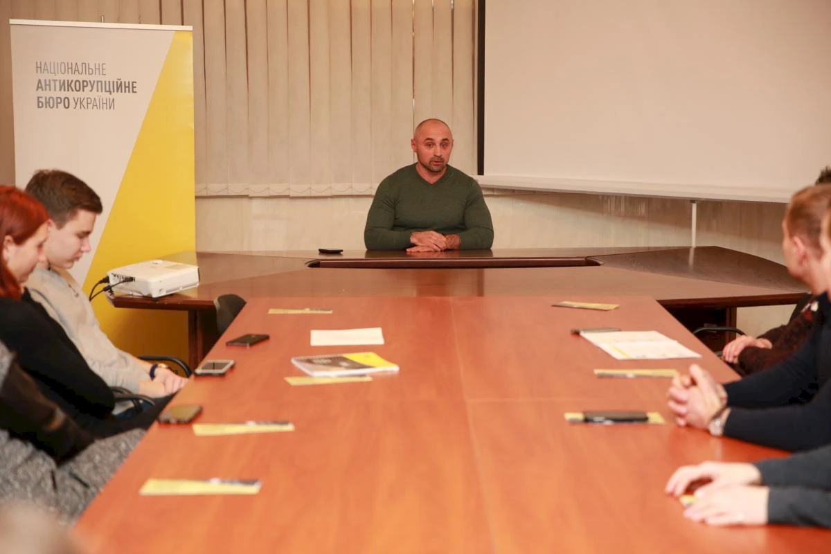 Цього ж дня студенти правничого коледжу Львівського національного університету ім. Івана Франка завітали до Львівського територіального управління НАБУ. Майбутні юристи ознайомилися з основними напрямками діяльності теруправління, дізнались умови проведення конкурсного відбору на посади в Бюро, а також взяли участь у Антикорупційній вікторині. Результати вікторини продемонстрували, що молодь знає чимало про структуру антикорупційних органів в Україні та про НАБУ зокрема.