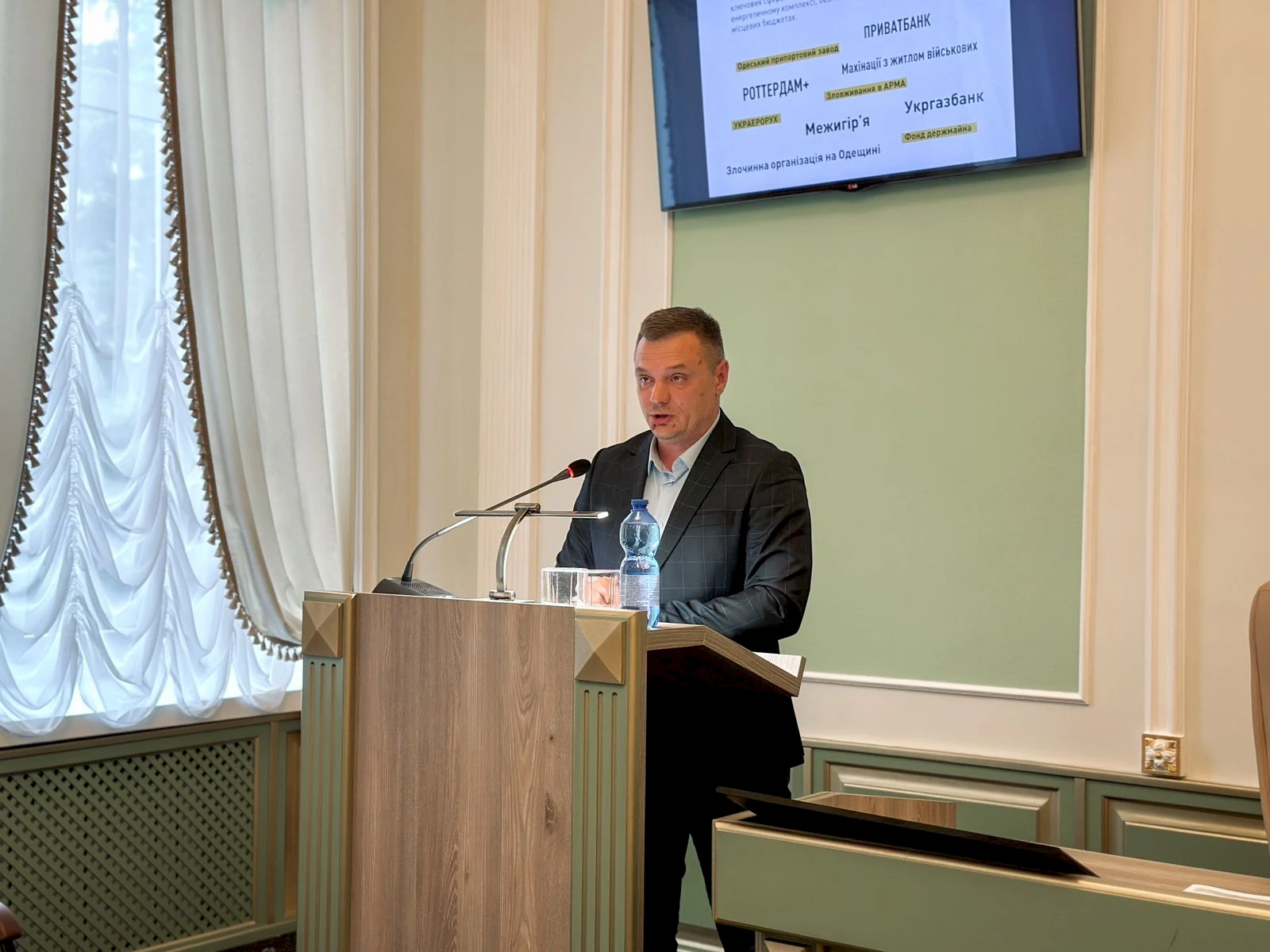 Директор ХТУ розповів учасникам заходу про результати діяльності НАБУ та САП. Зокрема, про викриття корупції практично в усіх ключових сферах життєдіяльності країни: паливно-енергетичному комплексі, безпеці та обороні, фінансовому секторі, місцевих бюджетах. Спікер також ознайомив присутніх із здобутками Національного бюро у розслідуваннях так званої «схемної корупції» на ПАТ «Укрнафта», АТ «Одеський припортовий завод», ПАТ АБ «Укргазбанк», ПАТ КБ «ПриватБанк» тощо.